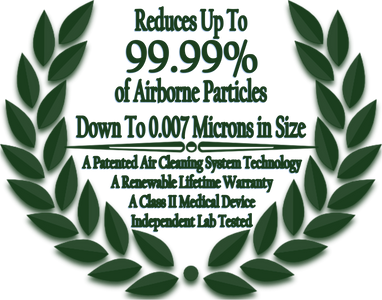 16,000 Volts of DC electricity throughout the main filter inhibits growth of Particles thru microbiostasis. Independent test results certify capture of ultrafine particles and microorganisms up to 99.99% of virus, bacteria and mold/fungi down to .007 Microns in size.